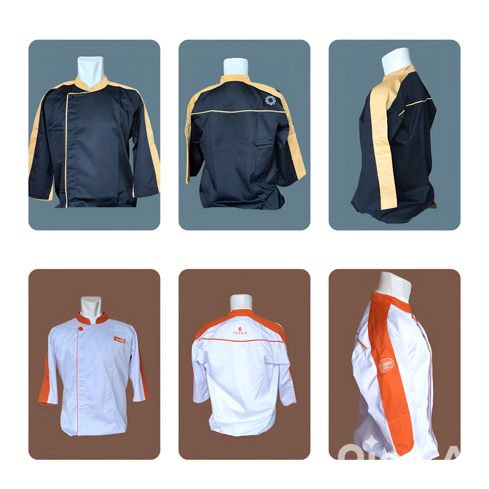 Pilih model, warna, dan detail seperti bordir nama atau logo restoran sesuai kebutuhan. Jahitan rapi dan ukuran yang pas untuk menjaga kenyamanan sepanjang hari. Pesanan dalam jumlah besar? Kami siap produksi cepat dengan hasil memuaskan!